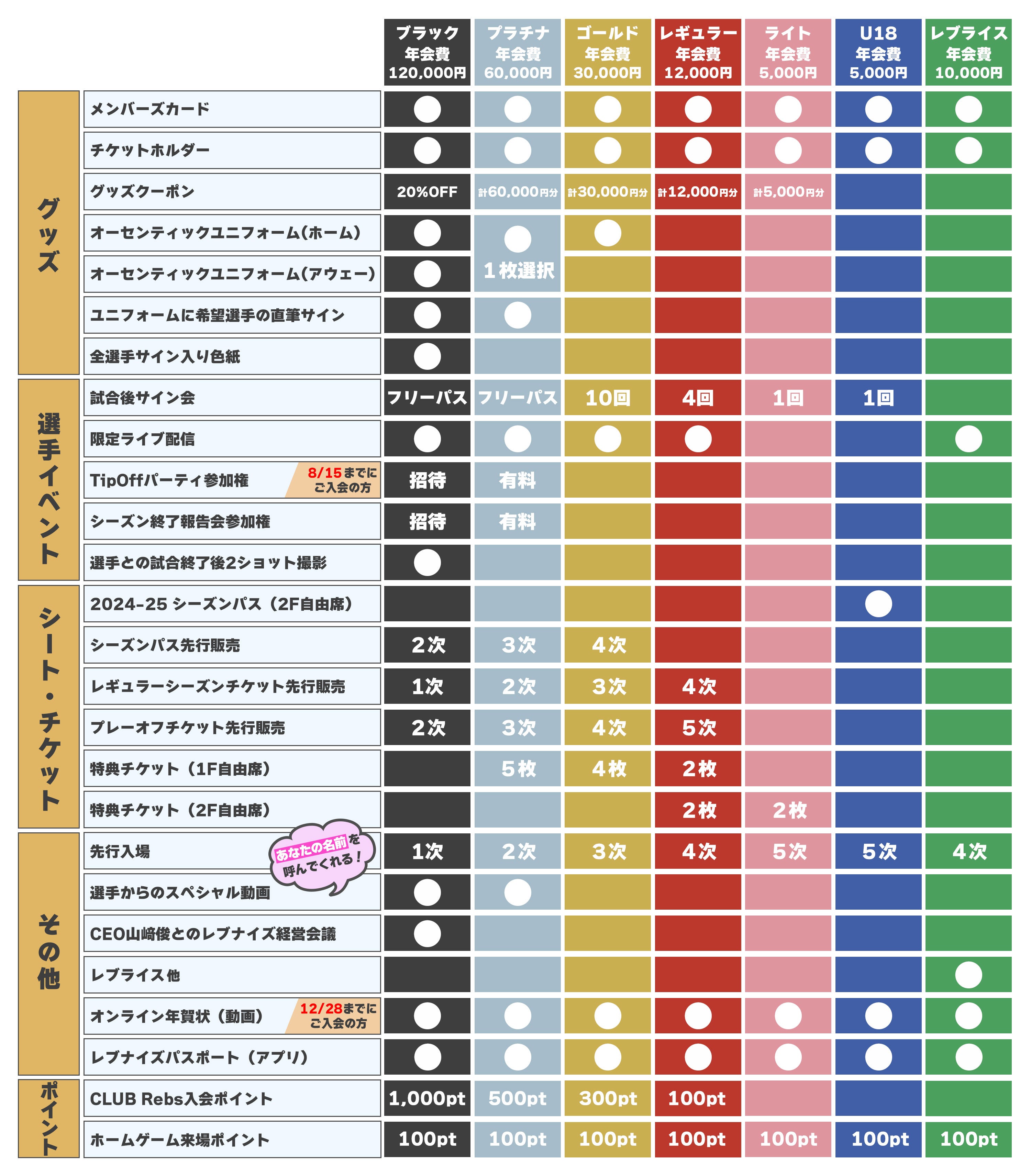 2024-25シーズンはこの席から見るぞ!という方はブラック、プラチナ、ゴールドプラン入会がオススメ!