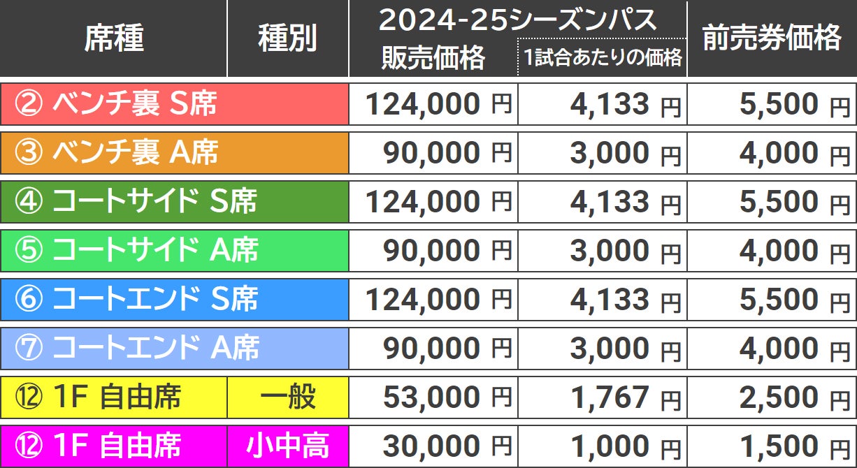 ※指定席のレイアウト変更に伴い、2023-24シーズン時の座席は継続されませんので、予めご了承ください。