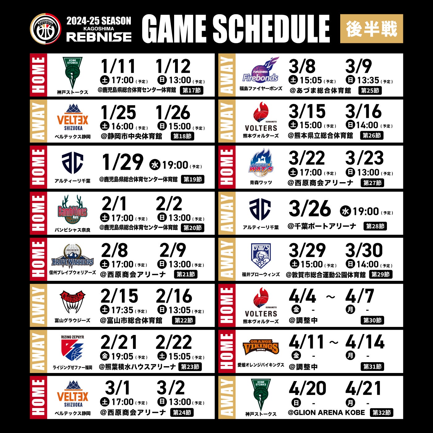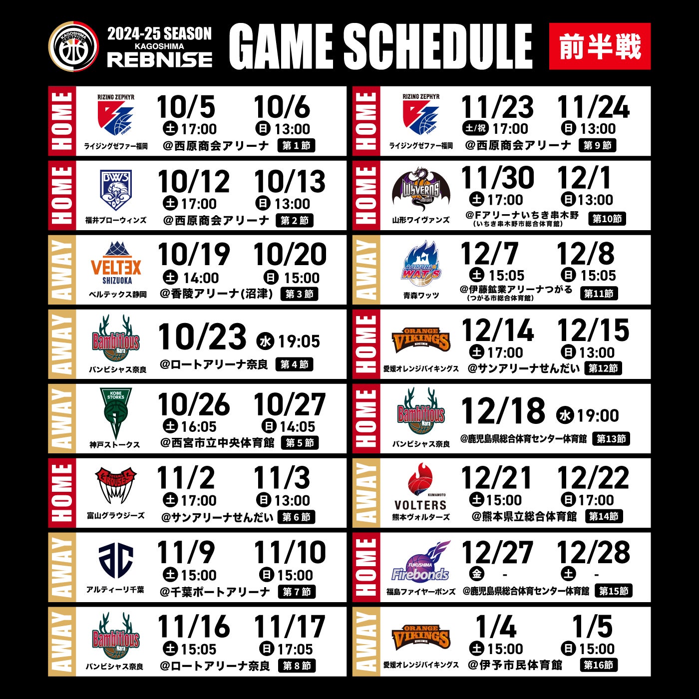 この度、鹿児島レブナイズでは、調整中となっておりました、りそなグループ B.LEAGUE 2024-25シーズンの下記試合の日時及び会場が決定いたしましたのでお知らせいたします。