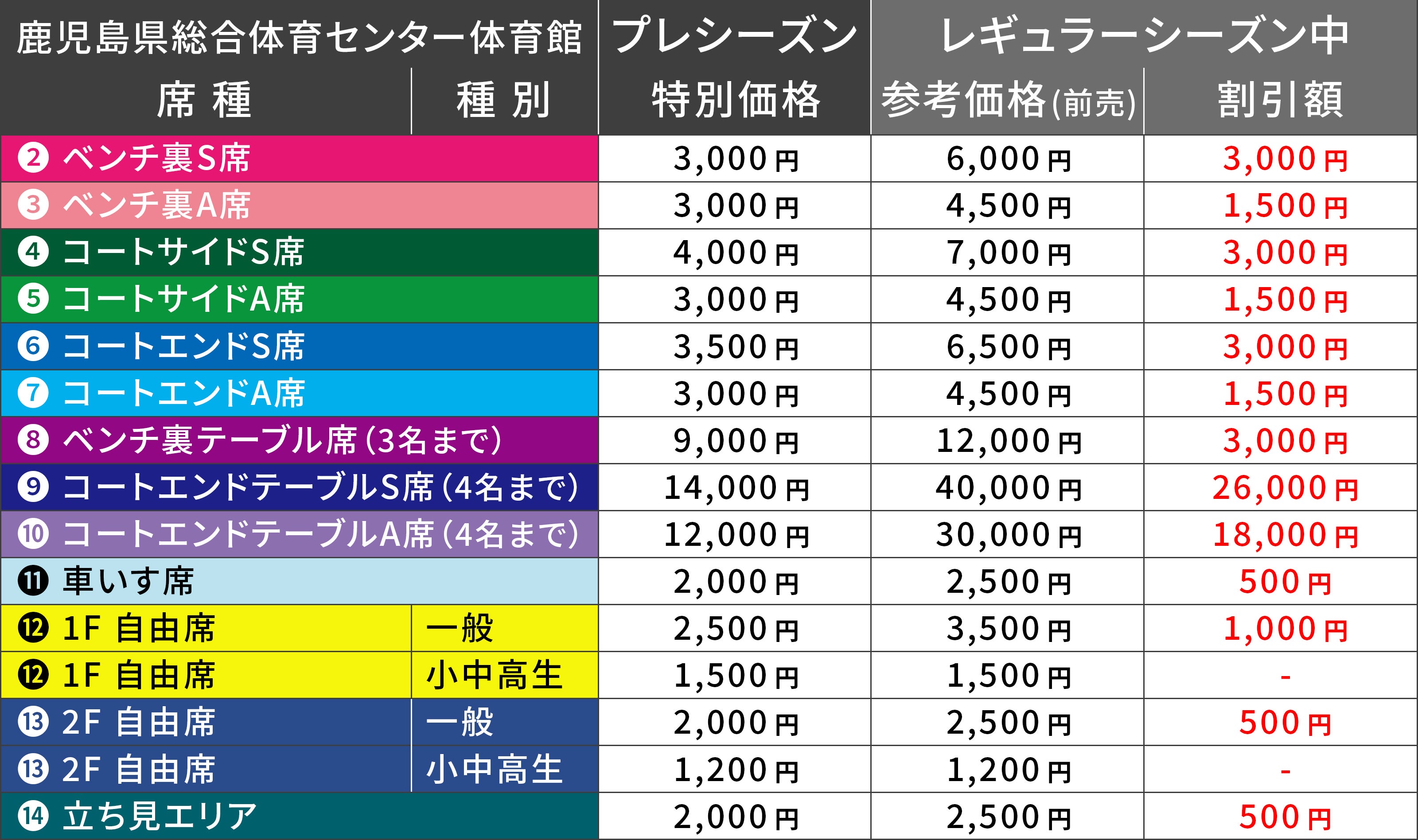 ◆ 鹿児島県総合体育センター体育館の2試合は、最前列席も大特価!