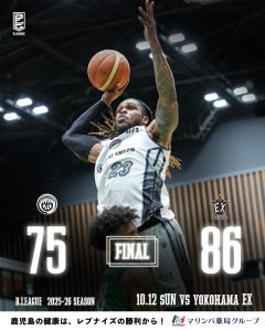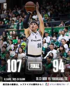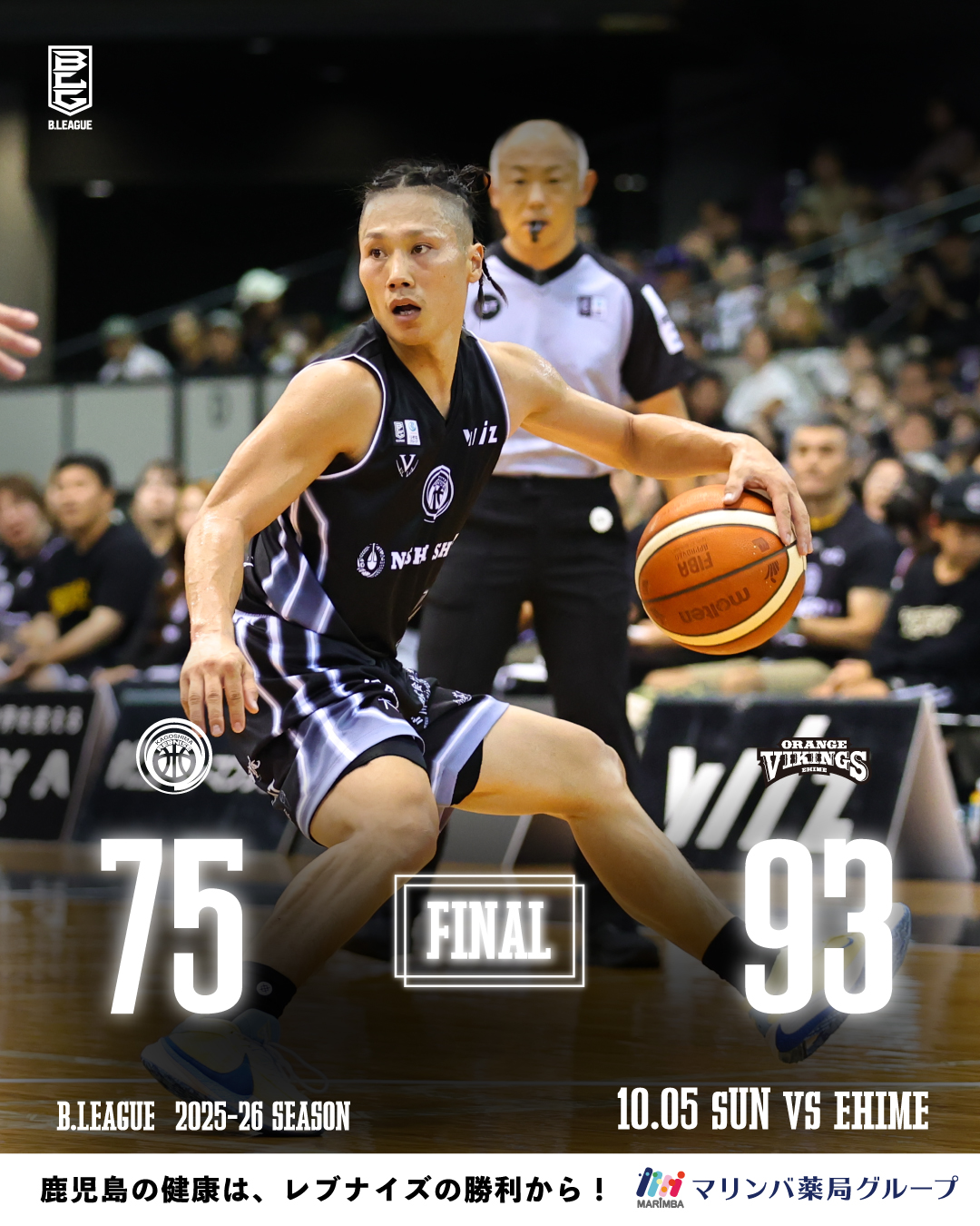 【鹿児島レブナイズ速報】りそなグループ B.LEAGUE 2024-25シーズン 第3節 GAME1(10/19)試合結果のお知らせ
