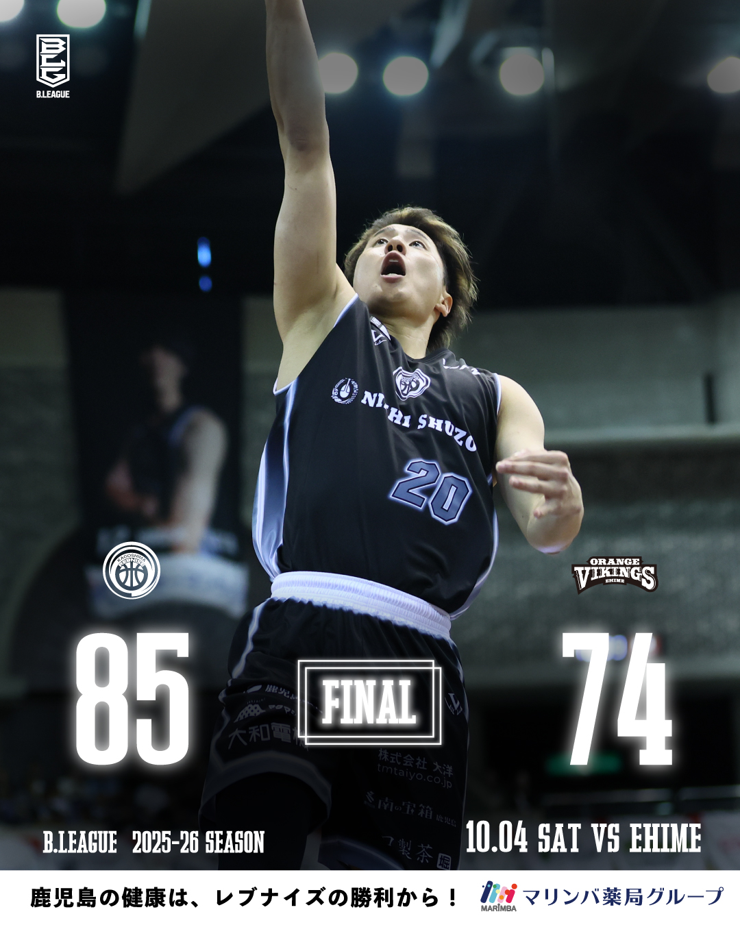 【鹿児島レブナイズ速報】WIN!WIN!WIN!りそなグループ B.LEAGUE 2024-25シーズン 第3節 GAME2(10/20)試合結果のお知らせ